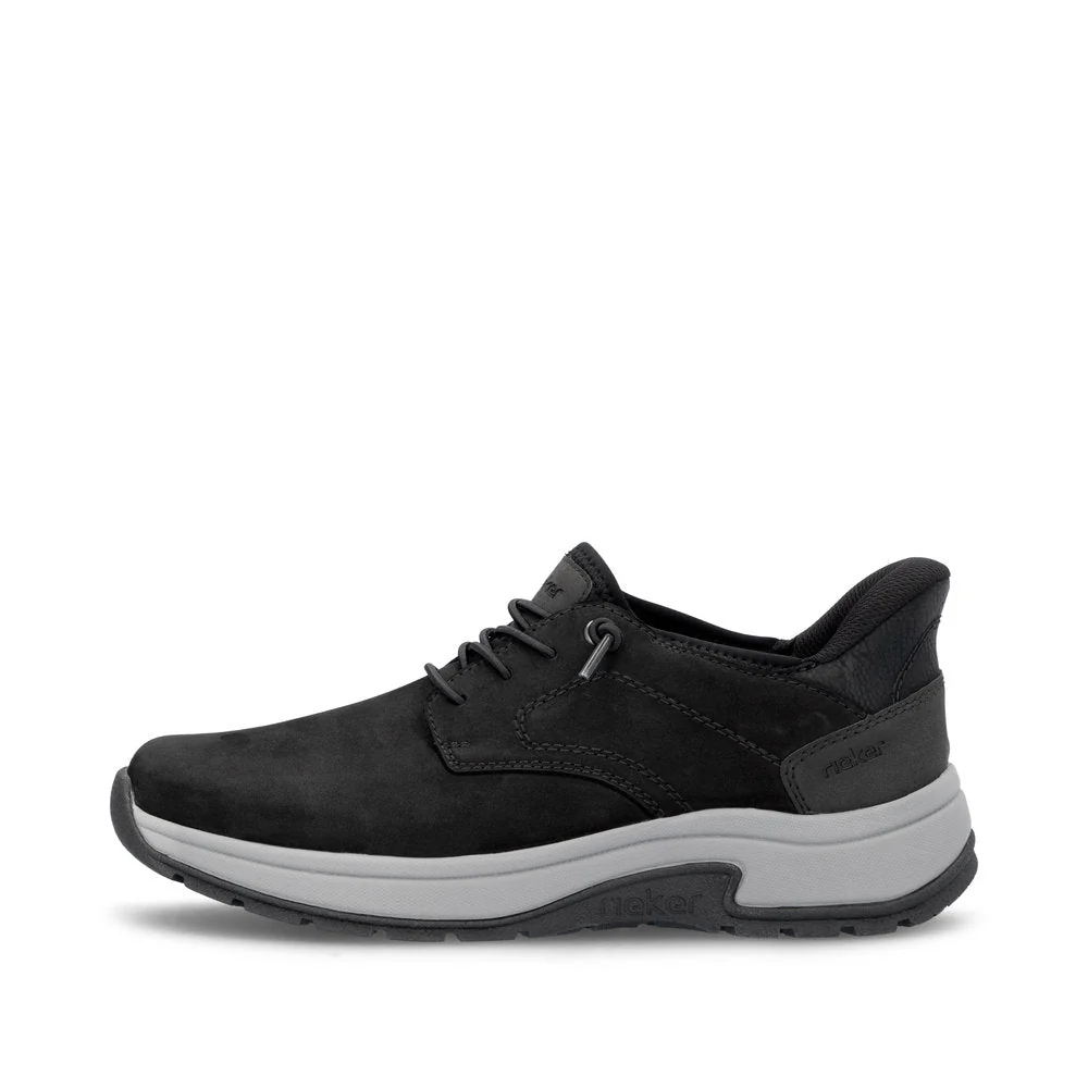 It doesn't get any cozier than this! These Rieker shoes made of suede leather combine cool design with best comfort and high functionality. The elastic lacing enables quick, uncomplicated entry and exit. The super light and flexible sole ensures a pleasant walking experience even when worn for long periods. The padded and removable insole ensures maximum comfort. A feel-good factor on top is the extra width, which offers more space in the shoe. The Ready2GO feature makes it easy to slip on - and the shoe keeps its shape! Fashionable wellness feeling in Rieker style!