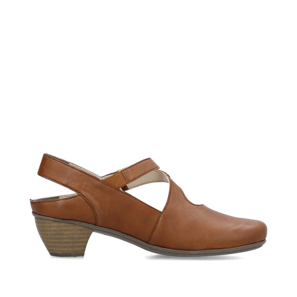 Fashionable must-have! These coffee brown pumps made of smooth leather by Rieker guarantee a heavenly feeling. The pumps are put on in no time thanks to a hook and loop fastener. A heel strap ensures that the foot gets optimal support. The light and shock-absorbing sole with block heel ensures a pleasant wearing sensation. In addition, the extra soft removable insole provides an extra portion of comfort. Fashionable well-being in the style of Rieker!