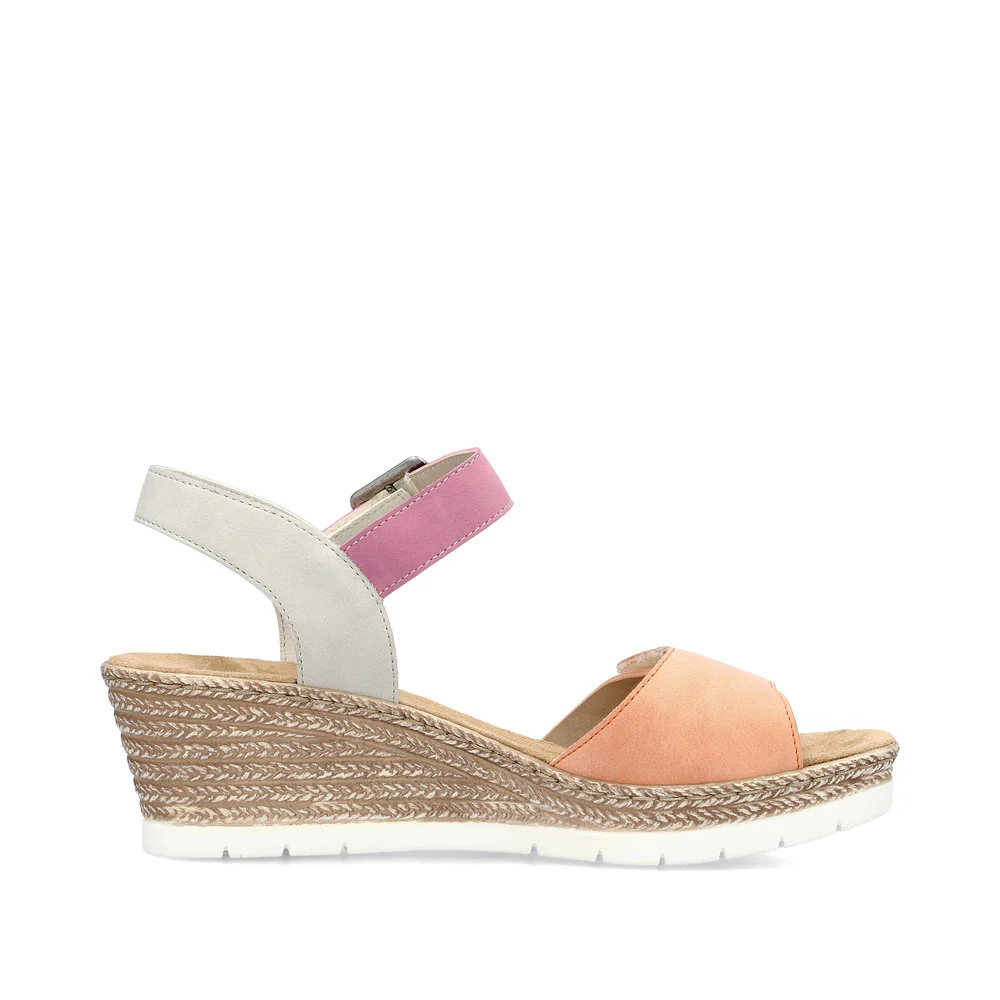 Style and comfort - best friends forever! You'll be cool and casual on the move in these blue Rieker wedge sandals. Thanks to the stitchdown construction, this shoe is particularly durable and flexible. The shoe can be put on very quickly thanks to the double hook and loop fastener. The trendy buckle adds a special touch. The shock-absorbing and light sole with wedge heel ensures a pleasant walking experience even when worn for long periods. Your feet will feel pampered at every step.