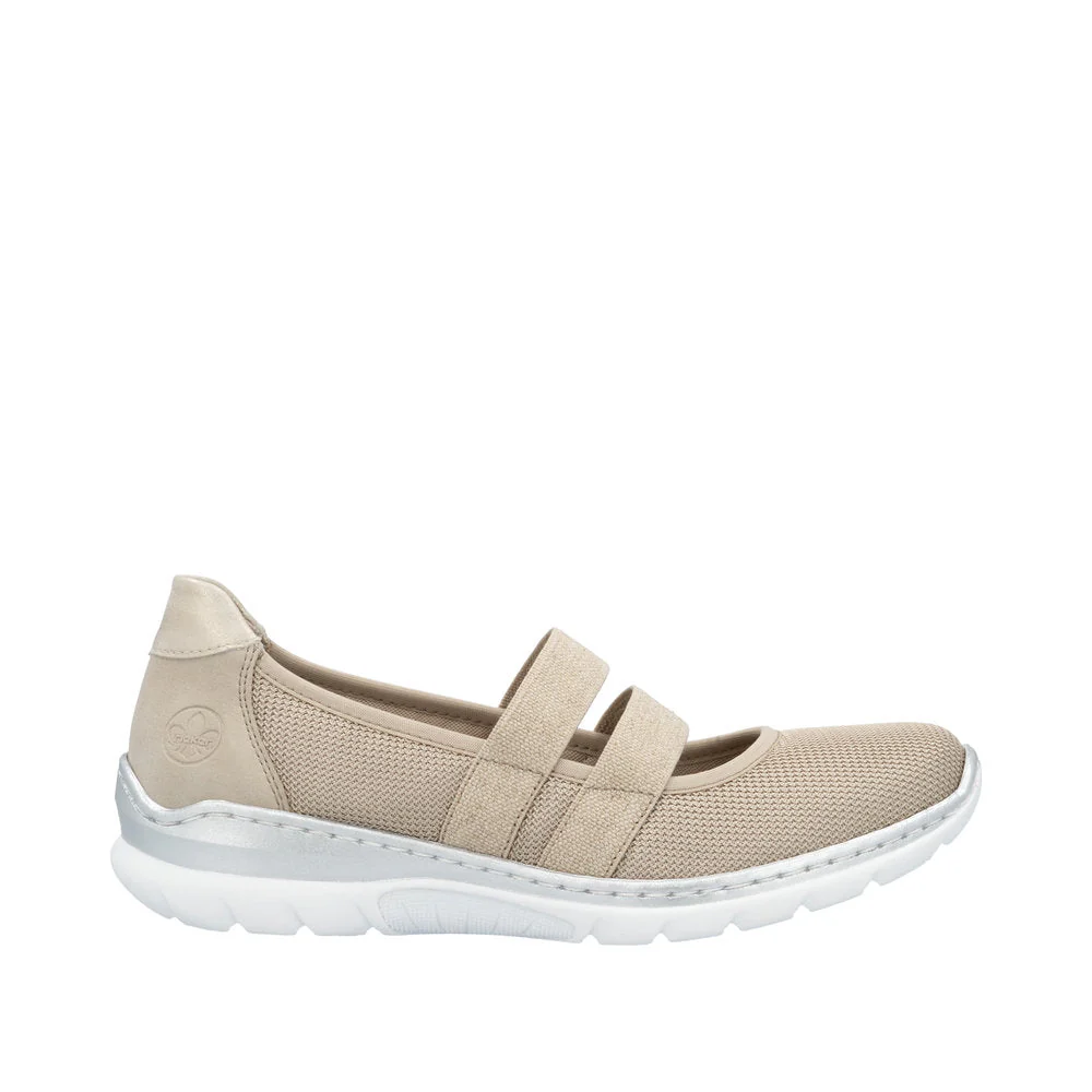 These casual beige Rieker shoes are simple and practical. Introducing your new favorite shoe! Thanks to the stitch-down construction, this shoe is particularly durable and flexible. The elastic bands allow for an easy entry. The light and shock-absorbing sole with wedge heel promises grip and the extra soft Memo-Soft cover sole provides additional comfort. More is not possible!