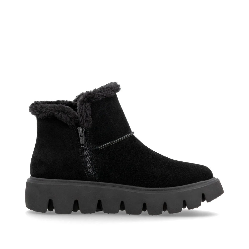 Design meets function! These cool Rieker ankle boots made of suede leather are THE highlight. The zipper allows for the shoe to be put on very quickly. With the ultra light and flexible sole, your feet will be pampered at every step. The comfort width offers enough space for the feet to feel comfortable even when worn for longer periods. Thanks to the insole with thermo effect, the inside of the shoe stays warm for a long time even in cold weather. Comfortably warm and moisture-regulating lamb fur ensures warm feet at low temperatures. No chance for temperatures below zero!.